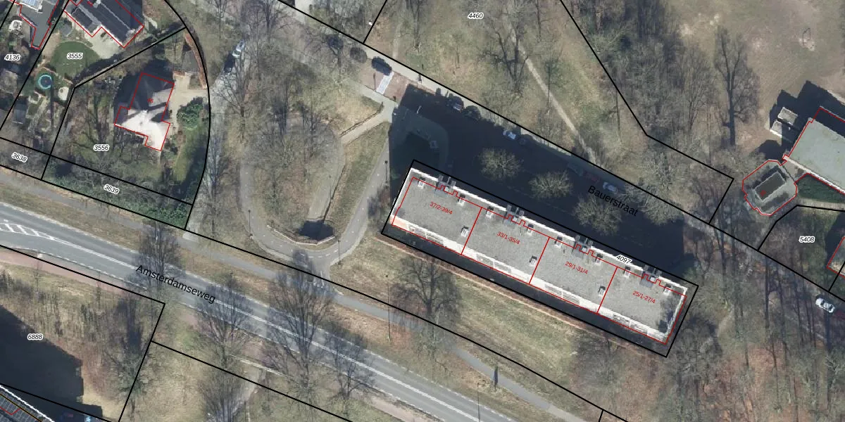 Bauerstraat 39-3 is gelegen op kadastraal perceel AHM01M4097. Deze kadastrale aanduiding is uniek en wordt gebruikt door het Kadaster om eigendomsrechten en andere zakelijke rechten vast te leggen. Het perceel maakt onderdeel uit van de kadastrale gemeente Arnhem.