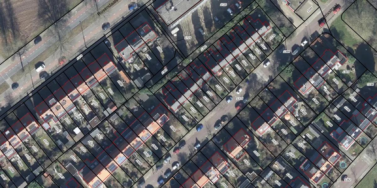Gebruik de zoekbalk of klik op een perceel voor informatie over de adressen binnen dit perceel.