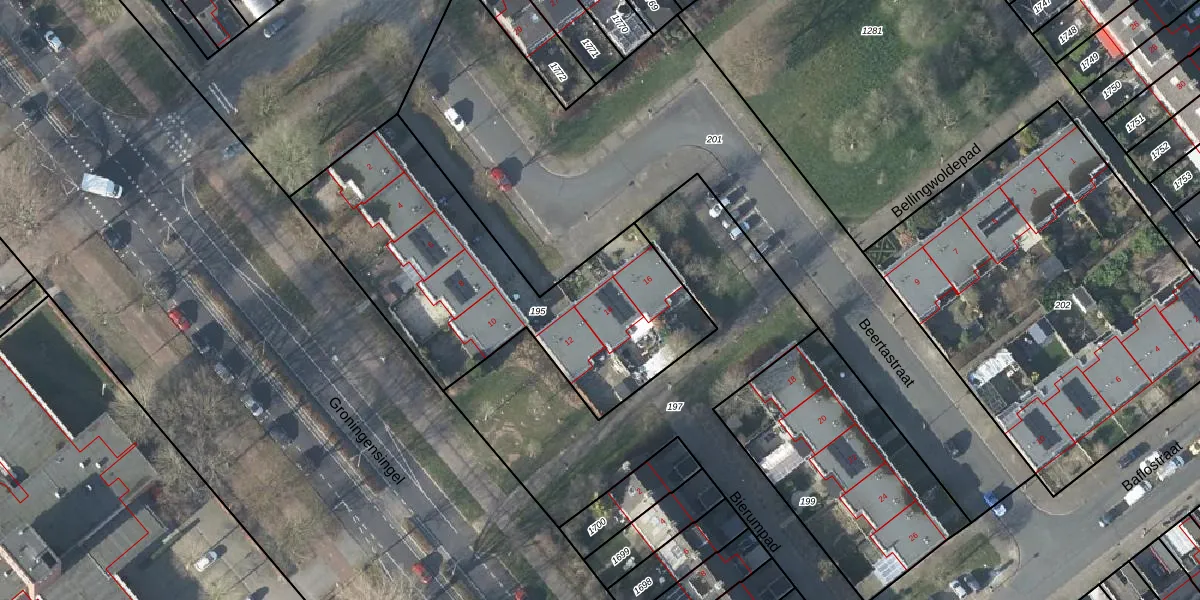 Beertastraat 14 is gelegen op kadastraal perceel AHM01W195. Deze kadastrale aanduiding is uniek en wordt gebruikt door het Kadaster om eigendomsrechten en andere zakelijke rechten vast te leggen. Het perceel maakt onderdeel uit van de kadastrale gemeente Arnhem.