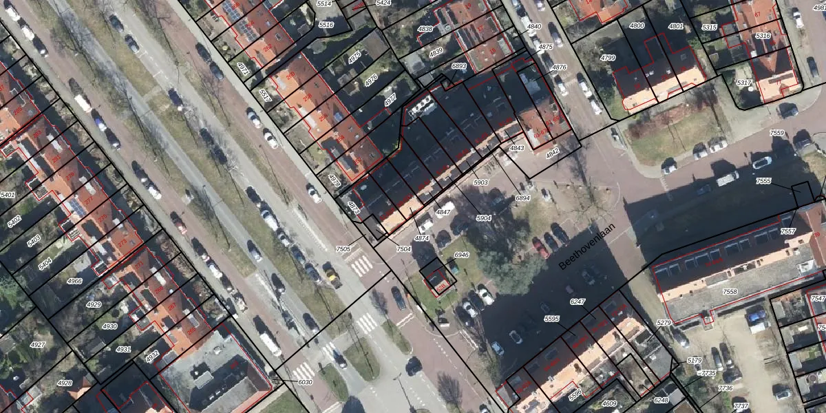 Het perceel waarop Beethovenlaan 53 staat heeft een oppervlakte van 83 m². Dit is een klein perceel. De perceeloppervlakte wordt geregistreerd door het Kadaster. Gedetailleerde informatie over de maten van dit perceel kunt u vinden in het rapport Kadastrale kaart met maatvoering van Beethovenlaan 53.
