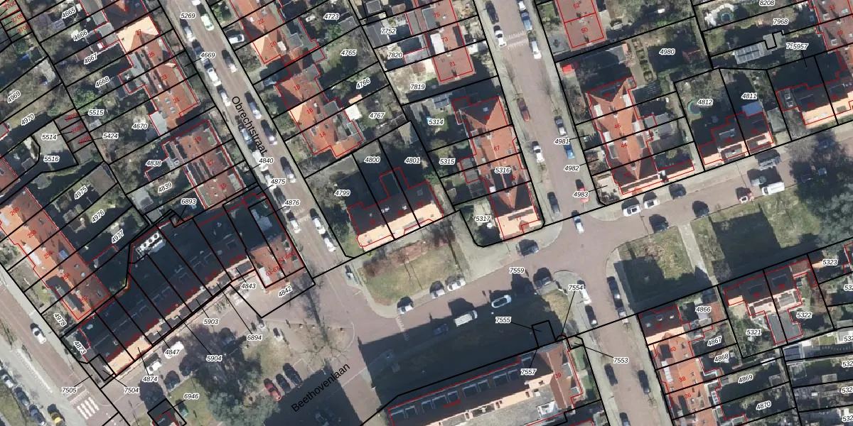 Het perceel waarop Beethovenlaan 75 staat heeft een oppervlakte van 215 m². Dit is een middelgroot perceel. De perceeloppervlakte wordt geregistreerd door het Kadaster. Gedetailleerde informatie over de maten van dit perceel kunt u vinden in het rapport Kadastrale kaart met maatvoering van Beethovenlaan 75.