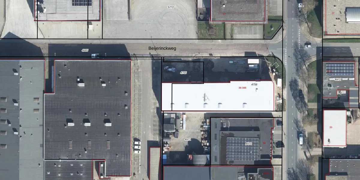 Beijerinckweg 38 is gelegen op kadastraal perceel AHM01D4756. Deze kadastrale aanduiding is uniek en wordt gebruikt door het Kadaster om eigendomsrechten en andere zakelijke rechten vast te leggen. Het perceel maakt onderdeel uit van de kadastrale gemeente Arnhem.