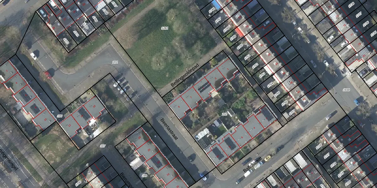 Bellingwoldepad 7 is gelegen op kadastraal perceel AHM01W202. Deze kadastrale aanduiding is uniek en wordt gebruikt door het Kadaster om eigendomsrechten en andere zakelijke rechten vast te leggen. Het perceel maakt onderdeel uit van de kadastrale gemeente Arnhem.