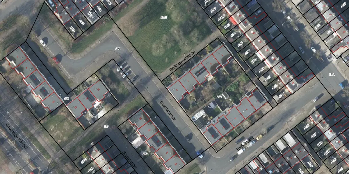 Bellingwoldepad 9 is gelegen op kadastraal perceel AHM01W202. Deze kadastrale aanduiding is uniek en wordt gebruikt door het Kadaster om eigendomsrechten en andere zakelijke rechten vast te leggen. Het perceel maakt onderdeel uit van de kadastrale gemeente Arnhem.