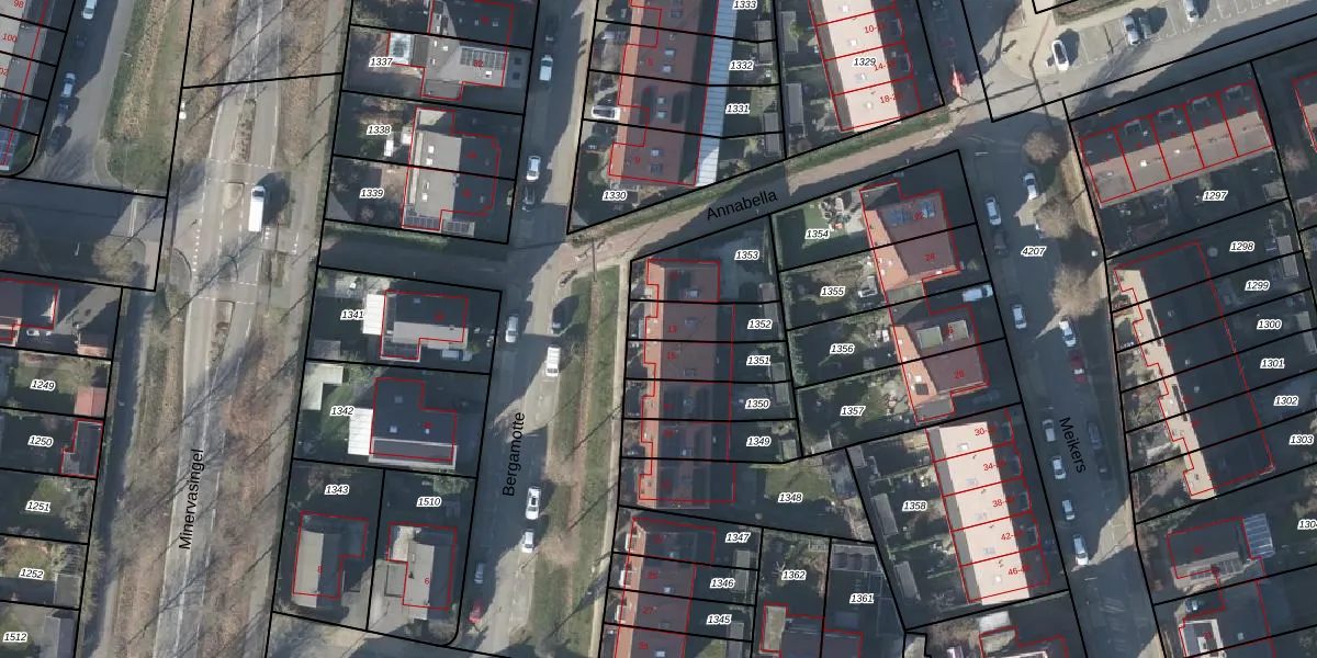Gebruik de zoekbalk of klik op een perceel voor informatie over de adressen binnen dit perceel.