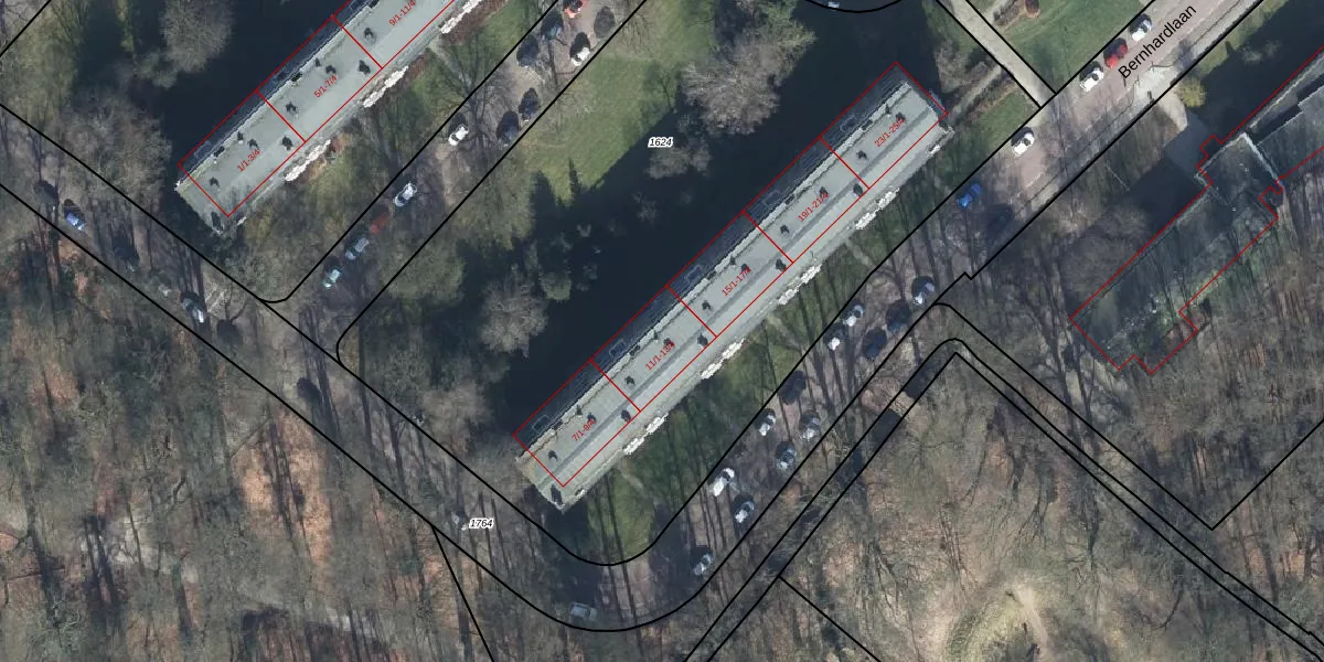Het perceel waarop Bernhardlaan 13-4 staat heeft een oppervlakte van 5070 m². Dit is een zeer groot perceel. De perceeloppervlakte wordt geregistreerd door het Kadaster. Gedetailleerde informatie over de maten van dit perceel kunt u vinden in het rapport Kadastrale kaart met maatvoering van Bernhardlaan 13-4.