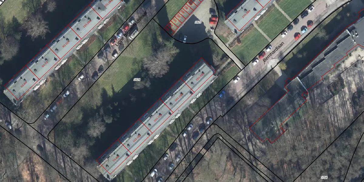 Het perceel waarop Bernhardlaan 21-3 staat heeft een oppervlakte van 5070 m². Dit is een zeer groot perceel. De perceeloppervlakte wordt geregistreerd door het Kadaster. Gedetailleerde informatie over de maten van dit perceel kunt u vinden in het rapport Kadastrale kaart met maatvoering van Bernhardlaan 21-3.