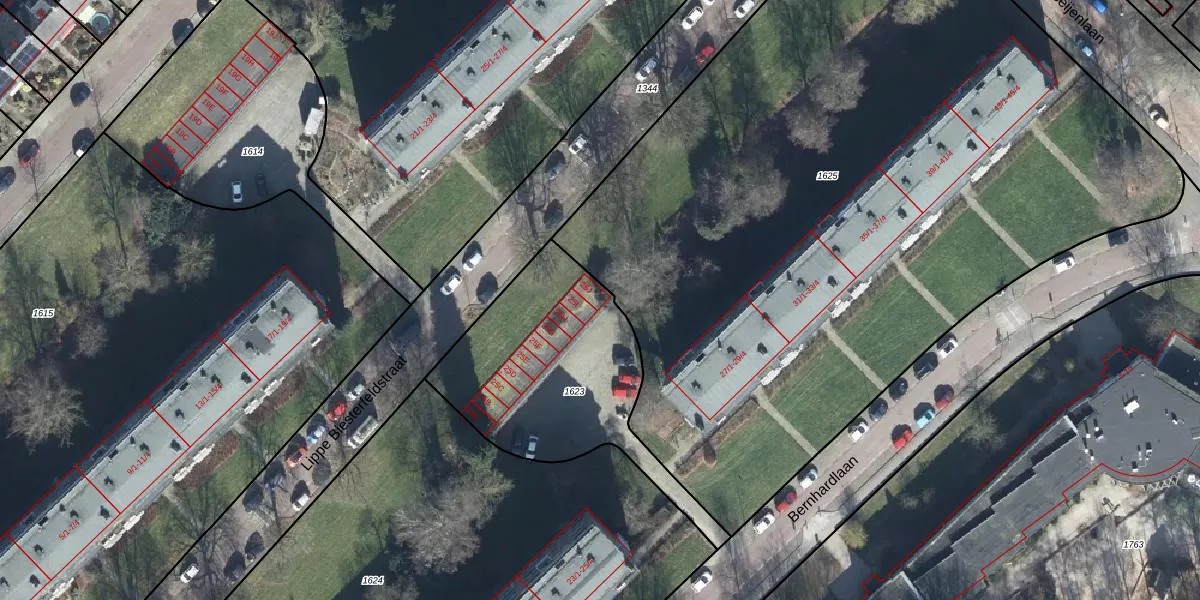Het perceel waarop Bernhardlaan 25-J staat heeft een oppervlakte van 931 m². Dit is een groot perceel. De perceeloppervlakte wordt geregistreerd door het Kadaster. Gedetailleerde informatie over de maten van dit perceel kunt u vinden in het rapport Kadastrale kaart met maatvoering van Bernhardlaan 25-J.