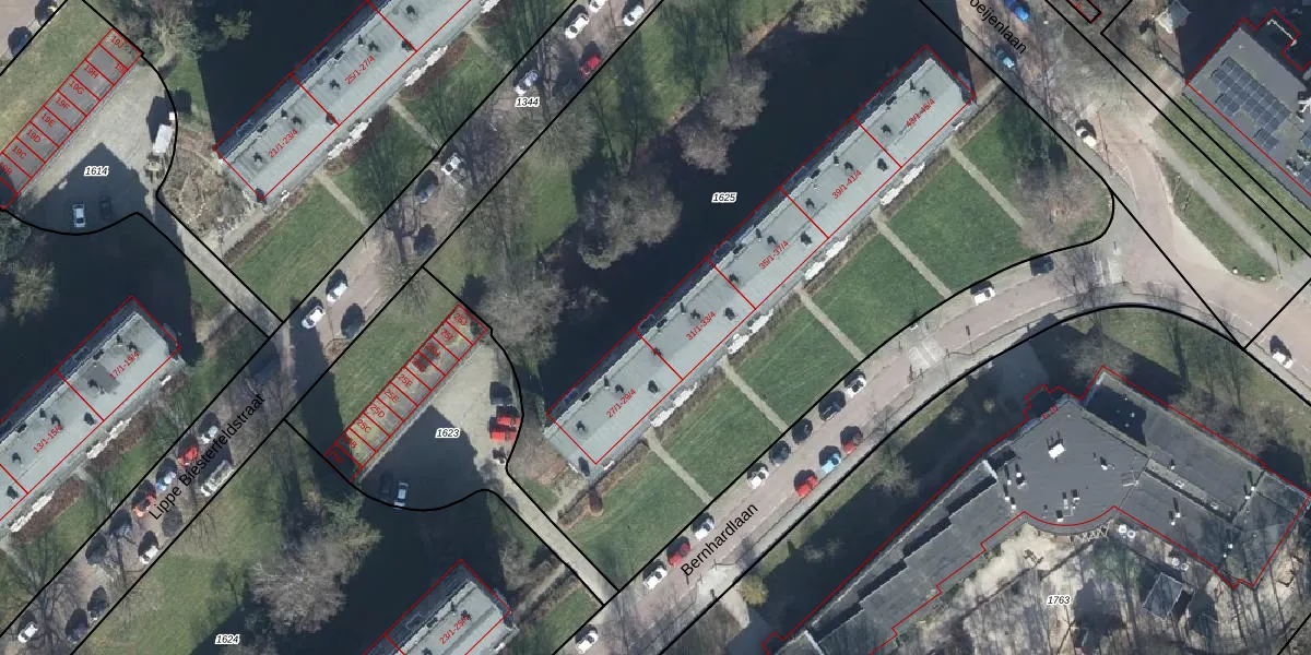 Het perceel waarop Bernhardlaan 31-4A staat heeft een oppervlakte van 5529 m². Dit is een zeer groot perceel. De perceeloppervlakte wordt geregistreerd door het Kadaster. Gedetailleerde informatie over de maten van dit perceel kunt u vinden in het rapport Kadastrale kaart met maatvoering van Bernhardlaan 31-4A.