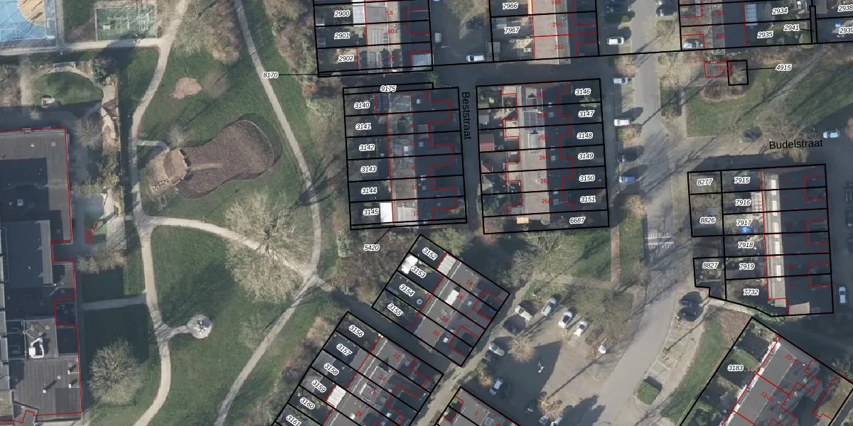 Gebruik de zoekbalk of klik op een perceel voor informatie over de adressen binnen dit perceel.