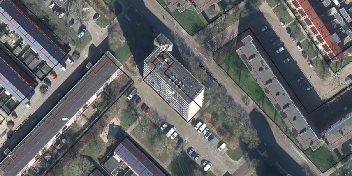 Het perceel waarop Bethaniënstraat 98 staat heeft een oppervlakte van 441 m². Dit is een groot perceel. De perceeloppervlakte wordt geregistreerd door het Kadaster. Gedetailleerde informatie over de maten van dit perceel kunt u vinden in het rapport Kadastrale kaart met maatvoering van Bethaniënstraat 98.