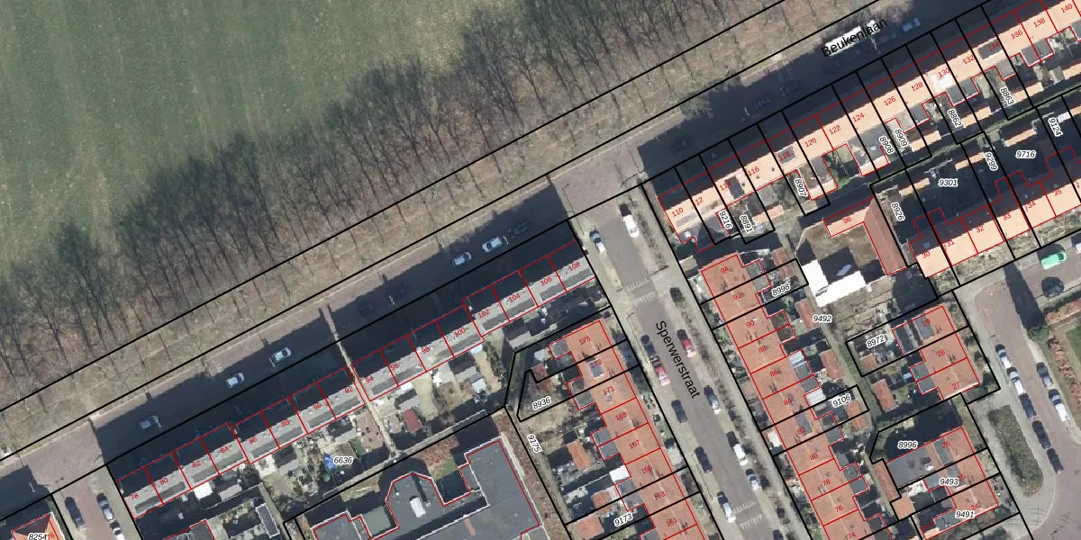 Het perceel waarop Beukenlaan 106 staat heeft een oppervlakte van 3300 m². Dit is een zeer groot perceel. De perceeloppervlakte wordt geregistreerd door het Kadaster. Gedetailleerde informatie over de maten van dit perceel kunt u vinden in het rapport Kadastrale kaart met maatvoering van Beukenlaan 106.