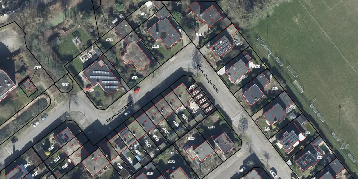 Gebruik de zoekbalk of klik op een perceel voor informatie over de adressen binnen dit perceel.