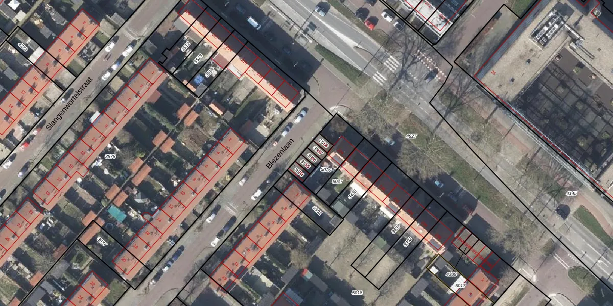 Het perceel waarop Biezenlaan 1-C staat heeft een oppervlakte van 20 m². Dit is een klein perceel. De perceeloppervlakte wordt geregistreerd door het Kadaster. Gedetailleerde informatie over de maten van dit perceel kunt u vinden in het rapport Kadastrale kaart met maatvoering van Biezenlaan 1-C.