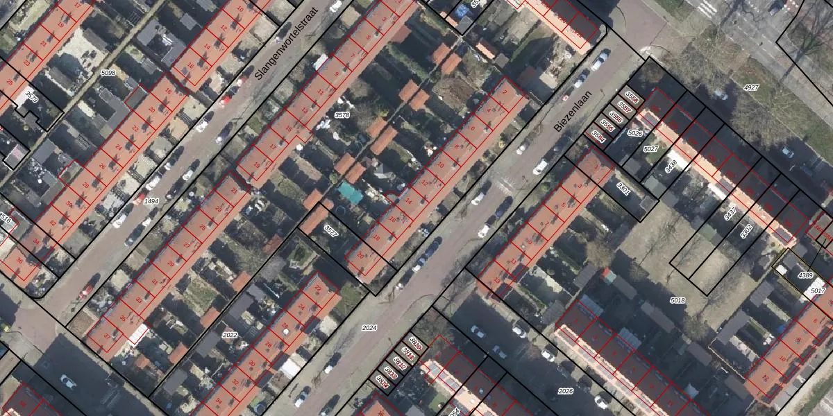 Het perceel waarop Biezenlaan 14 staat heeft een oppervlakte van 5149 m². Dit is een zeer groot perceel. De perceeloppervlakte wordt geregistreerd door het Kadaster. Gedetailleerde informatie over de maten van dit perceel kunt u vinden in het rapport Kadastrale kaart met maatvoering van Biezenlaan 14.