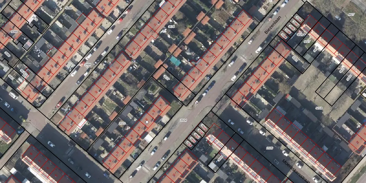 Het perceel waarop Biezenlaan 20 staat heeft een oppervlakte van 202 m². Dit is een middelgroot perceel. De perceeloppervlakte wordt geregistreerd door het Kadaster. Gedetailleerde informatie over de maten van dit perceel kunt u vinden in het rapport Kadastrale kaart met maatvoering van Biezenlaan 20.