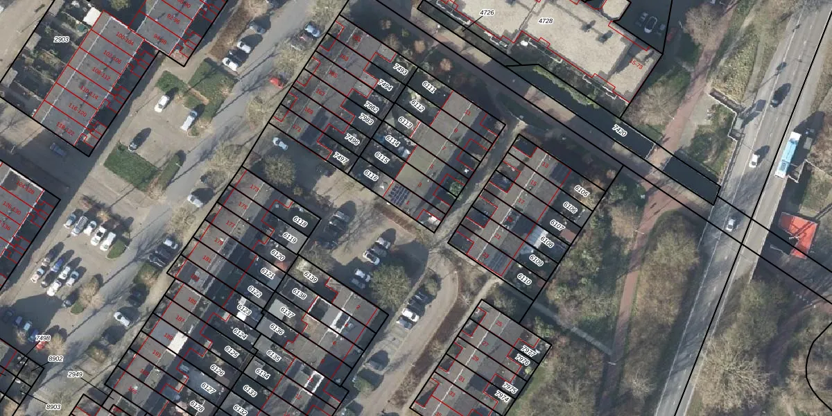Gebruik de zoekbalk of klik op een perceel voor informatie over de adressen binnen dit perceel.