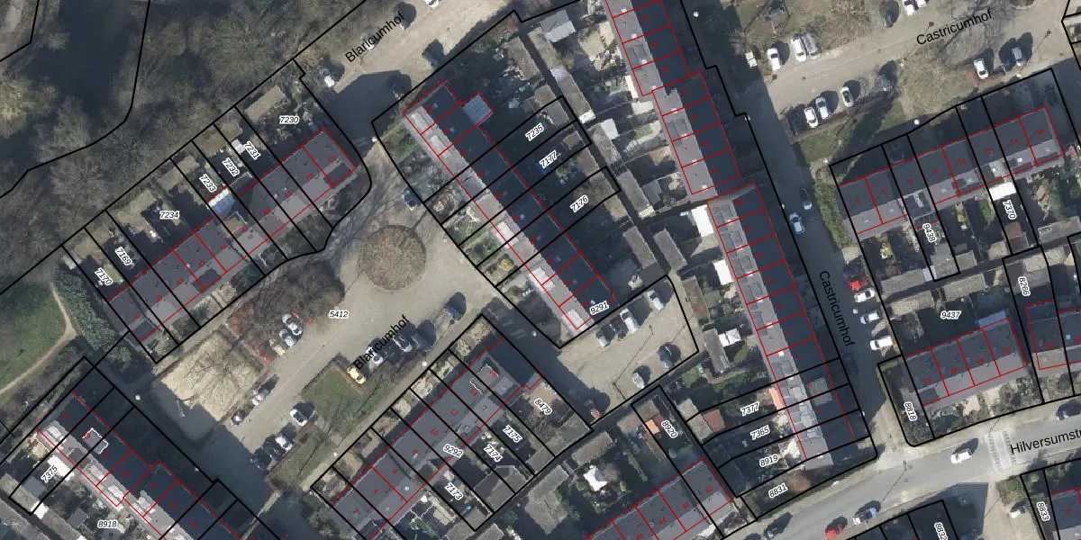 Het perceel waarop Blaricumhof 22 staat heeft een oppervlakte van 5070 m². Dit is een zeer groot perceel. De perceeloppervlakte wordt geregistreerd door het Kadaster. Gedetailleerde informatie over de maten van dit perceel kunt u vinden in het rapport Kadastrale kaart met maatvoering van Blaricumhof 22.