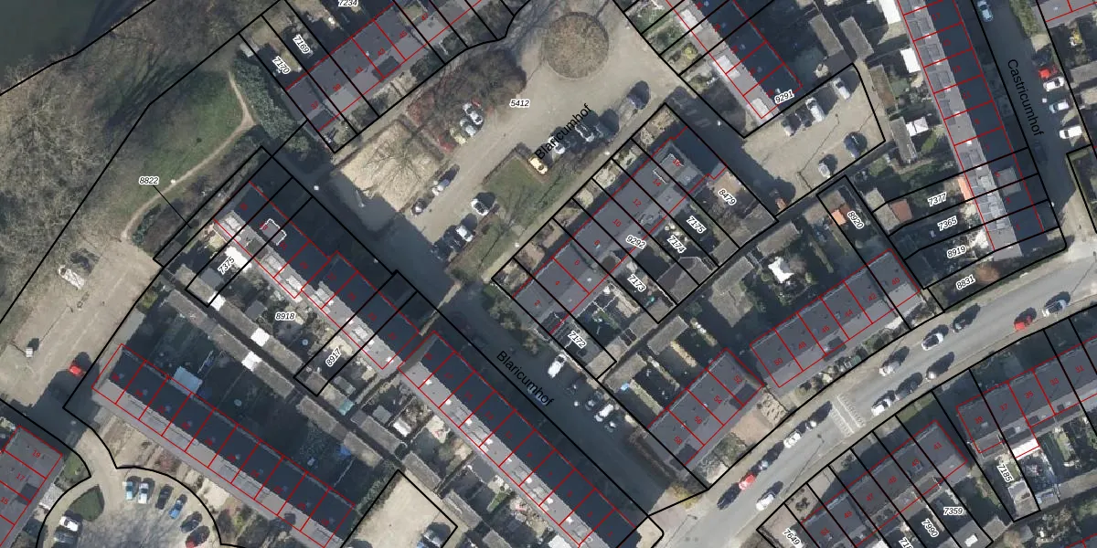 Het perceel waarop het adres ligt is AHM03-AC-9291. De afkorting 'AHM03' staat voor kadastrale gemeente Arnhem. De oppervlakte van het perceel is 5070 m². Dat is groter dan gemiddeld in Arnhem, waar de gemiddelde perceeloppervlakte op 651,57 m² ligt. De grootste perceeloppervlakte in de kadastrale gemeente is 14,2 ha. De kleinste oppervlakte bedraagt 0 m². Er zijn 33 adressen aanwezig op het perceel. De huidige grenzen van het perceel zijn digitaal in de Basisregistratie Kadaster (BRK) geregistreerd op 12-01-2017.