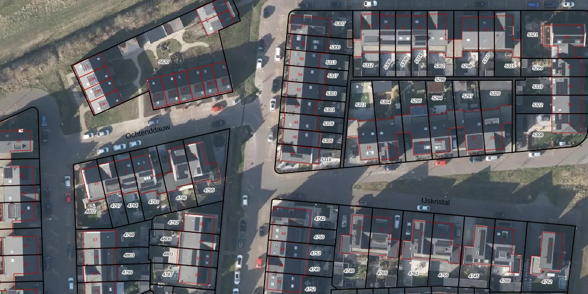 Gebruik de zoekbalk of klik op een perceel voor informatie over de adressen binnen dit perceel.