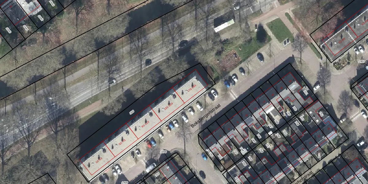 Het perceel waarop Boksbergenstraat 17-1 staat heeft een oppervlakte van 1584 m². Dit is een zeer groot perceel. De perceeloppervlakte wordt geregistreerd door het Kadaster. Gedetailleerde informatie over de maten van dit perceel kunt u vinden in het rapport Kadastrale kaart met maatvoering van Boksbergenstraat 17-1.
