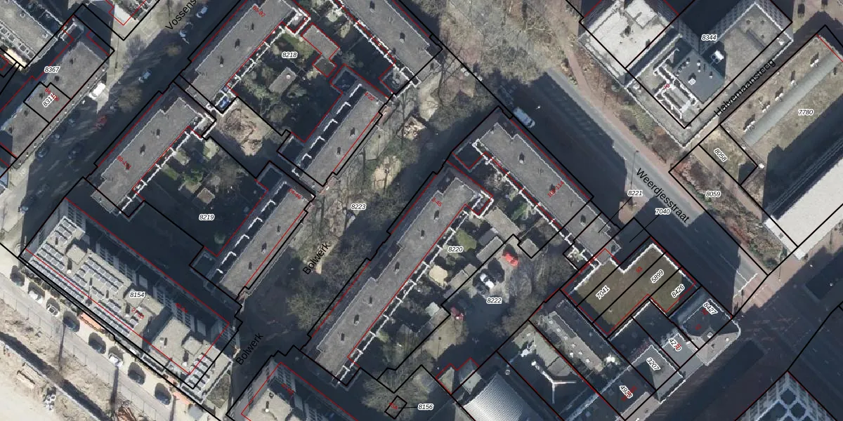 Het perceel waarop Bolwerk 15 staat heeft een oppervlakte van 1770 m². Dit is een zeer groot perceel. De perceeloppervlakte wordt geregistreerd door het Kadaster. Gedetailleerde informatie over de maten van dit perceel kunt u vinden in het rapport Kadastrale kaart met maatvoering van Bolwerk 15.