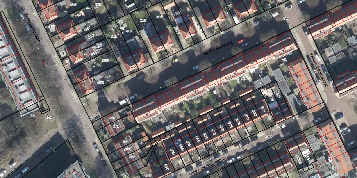 Het perceel waarop Bonte Wetering 14 staat heeft een oppervlakte van 2657 m². Dit is een zeer groot perceel. De perceeloppervlakte wordt geregistreerd door het Kadaster. Gedetailleerde informatie over de maten van dit perceel kunt u vinden in het rapport Kadastrale kaart met maatvoering van Bonte Wetering 14.