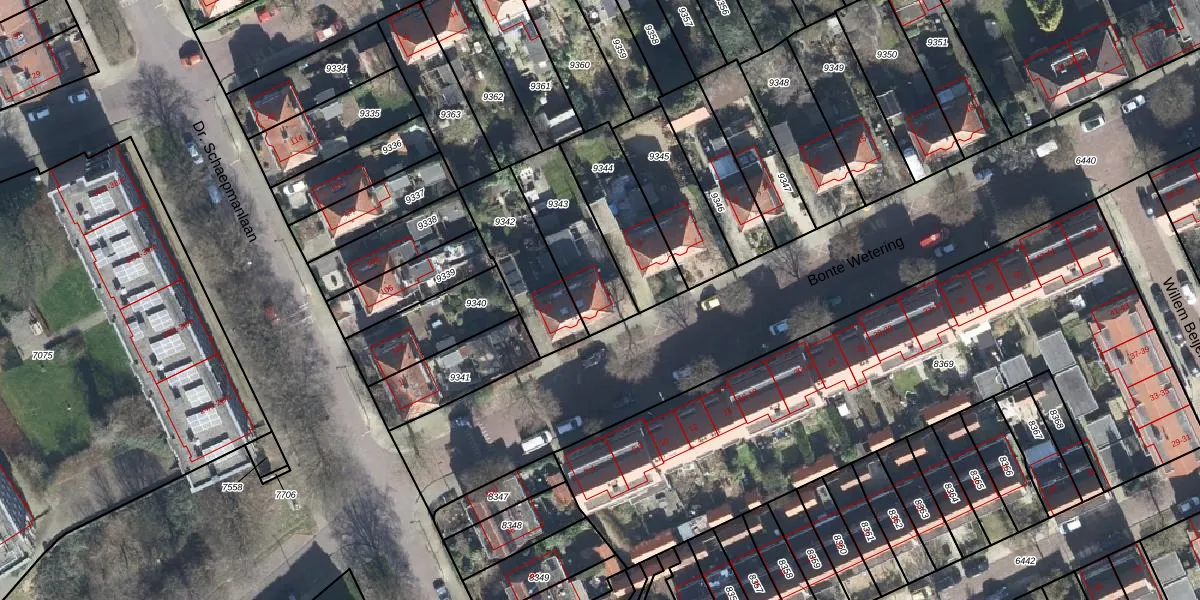 Gebruik de zoekbalk of klik op een perceel voor informatie over de adressen binnen dit perceel.