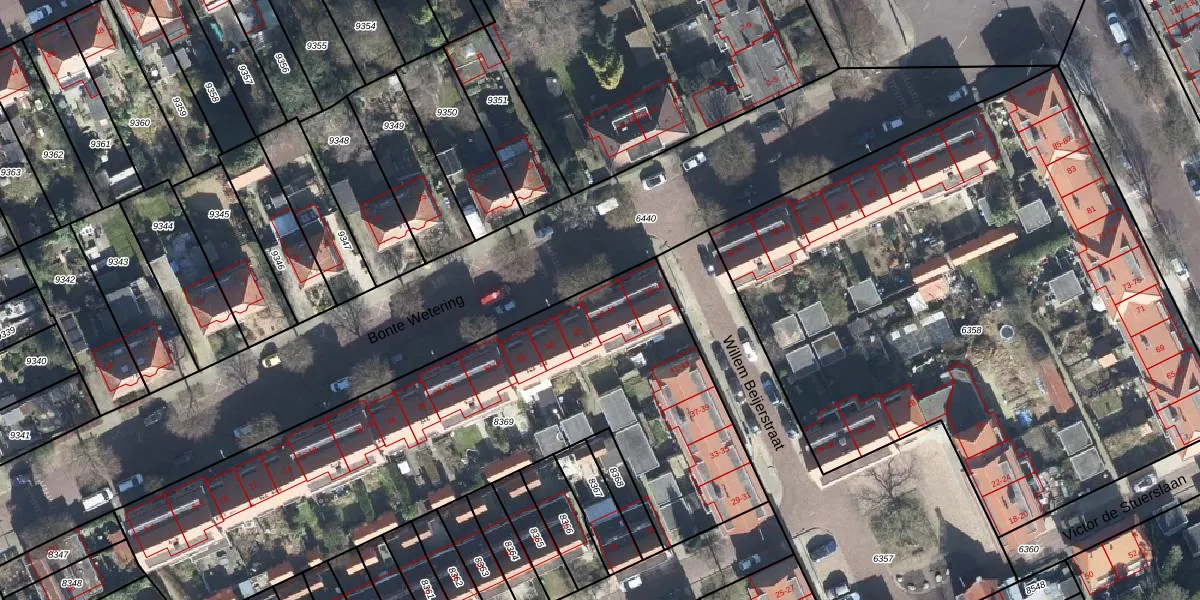 Het perceel waarop Bonte Wetering 42 staat heeft een oppervlakte van 2657 m². Dit is een zeer groot perceel. De perceeloppervlakte wordt geregistreerd door het Kadaster. Gedetailleerde informatie over de maten van dit perceel kunt u vinden in het rapport Kadastrale kaart met maatvoering van Bonte Wetering 42.