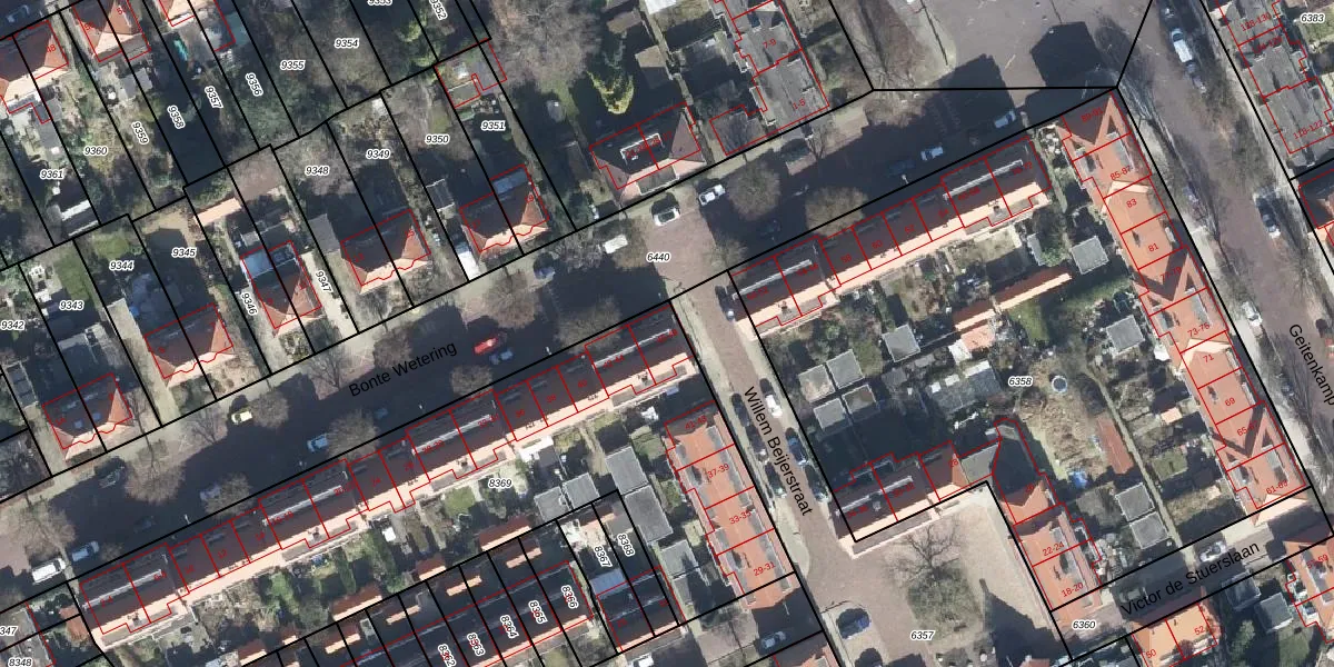 Het perceel waarop Bonte Wetering 48 staat heeft een oppervlakte van 2657 m². Dit is een zeer groot perceel. De perceeloppervlakte wordt geregistreerd door het Kadaster. Gedetailleerde informatie over de maten van dit perceel kunt u vinden in het rapport Kadastrale kaart met maatvoering van Bonte Wetering 48.