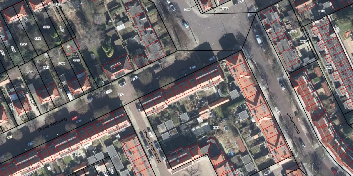 Het perceel waarop Bonte Wetering 60 staat heeft een oppervlakte van 3860 m². Dit is een zeer groot perceel. De perceeloppervlakte wordt geregistreerd door het Kadaster. Gedetailleerde informatie over de maten van dit perceel kunt u vinden in het rapport Kadastrale kaart met maatvoering van Bonte Wetering 60.