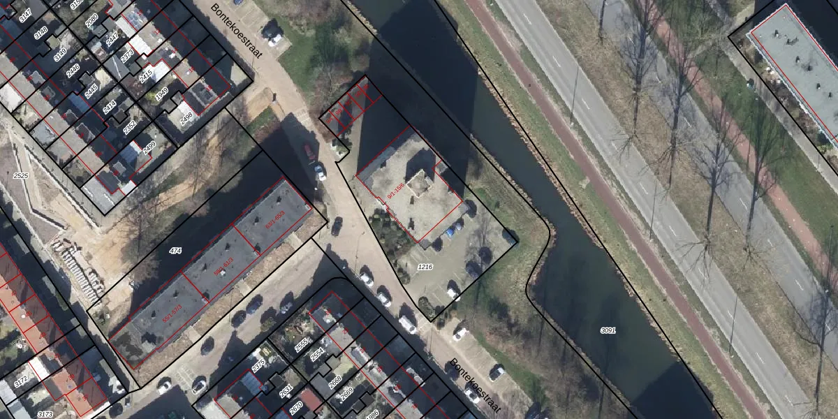 Het perceel waarop Bontekoestraat 15-1 staat heeft een oppervlakte van 1214 m². Dit is een zeer groot perceel. De perceeloppervlakte wordt geregistreerd door het Kadaster. Gedetailleerde informatie over de maten van dit perceel kunt u vinden in het rapport Kadastrale kaart met maatvoering van Bontekoestraat 15-1.