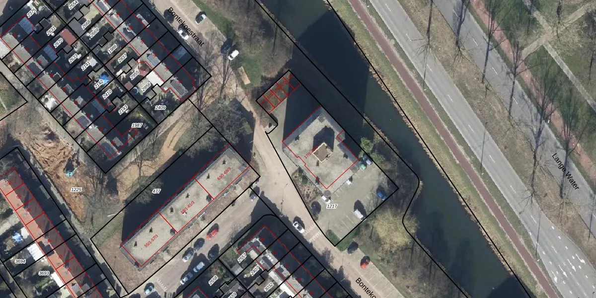 Het perceel waarop Bontekoestraat 17-1 staat heeft een oppervlakte van 1249 m². Dit is een zeer groot perceel. De perceeloppervlakte wordt geregistreerd door het Kadaster. Gedetailleerde informatie over de maten van dit perceel kunt u vinden in het rapport Kadastrale kaart met maatvoering van Bontekoestraat 17-1.