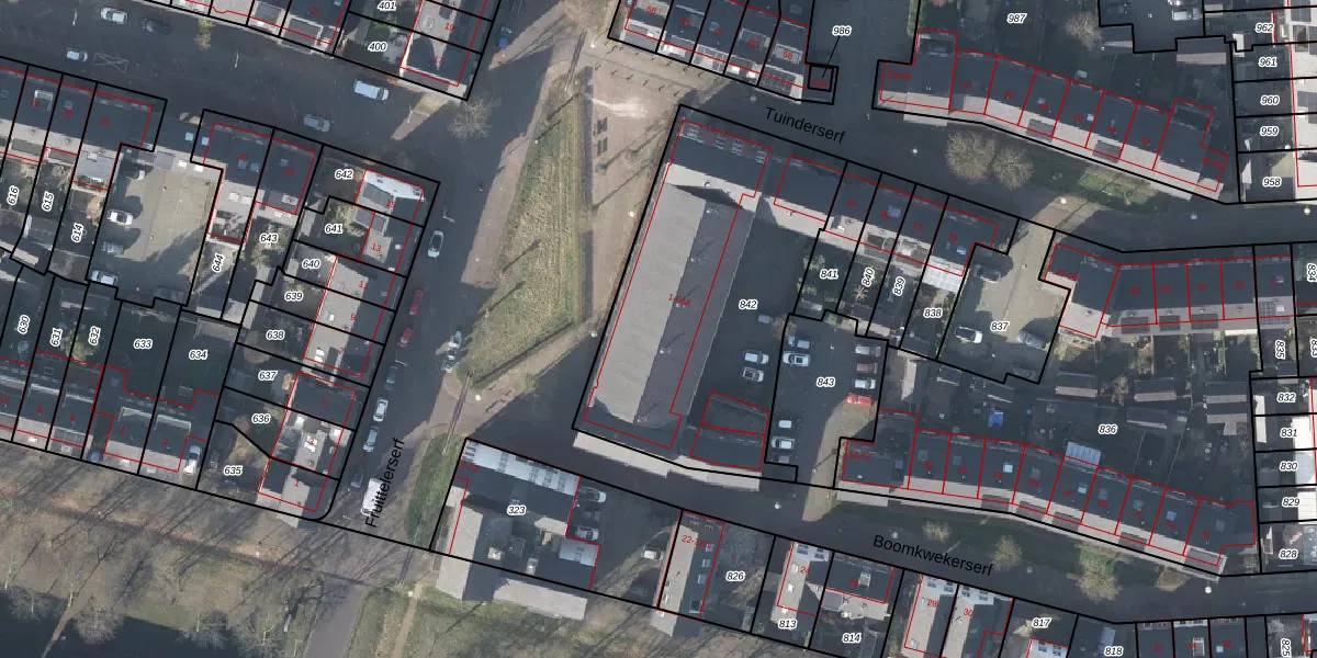 Het perceel waarop Boomkwekerserf 17 staat heeft een oppervlakte van 1412 m². Dit is een zeer groot perceel. De perceeloppervlakte wordt geregistreerd door het Kadaster. Gedetailleerde informatie over de maten van dit perceel kunt u vinden in het rapport Kadastrale kaart met maatvoering van Boomkwekerserf 17.