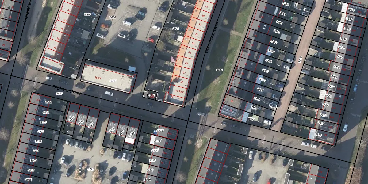 Het perceel waarop Boreasplantsoen 23 staat heeft een oppervlakte van 1894 m². Dit is een zeer groot perceel. De perceeloppervlakte wordt geregistreerd door het Kadaster. Gedetailleerde informatie over de maten van dit perceel kunt u vinden in het rapport Kadastrale kaart met maatvoering van Boreasplantsoen 23.