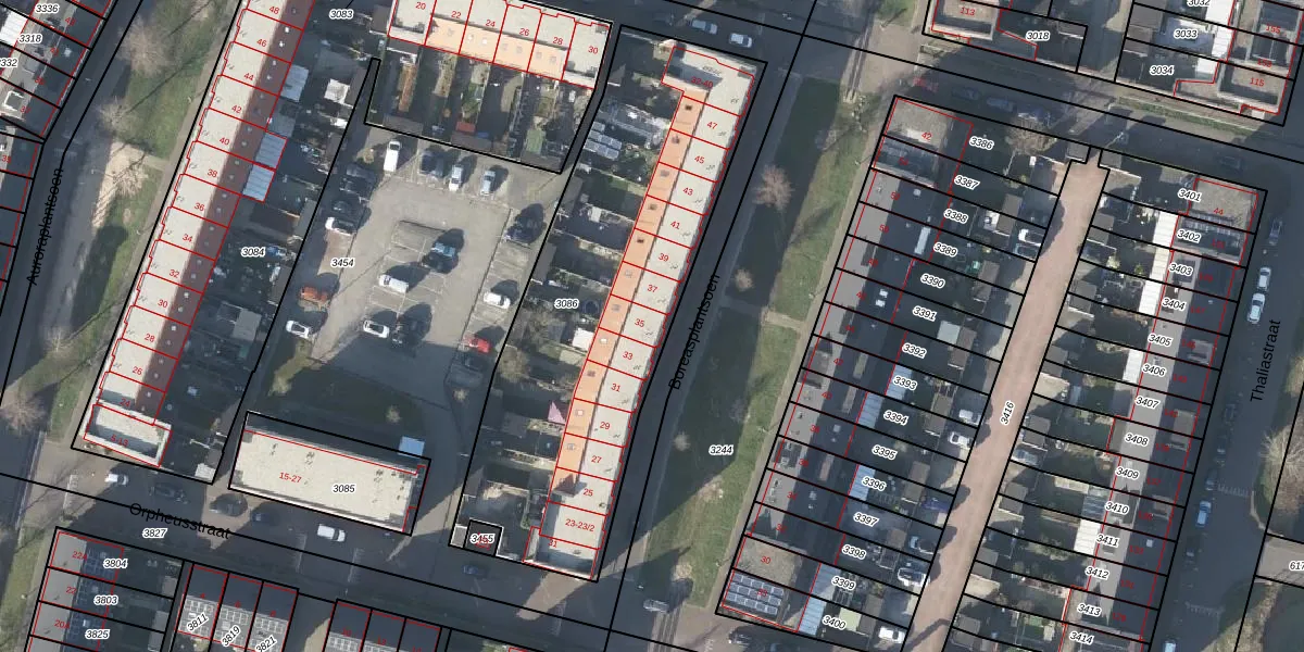 Het perceel waarop Boreasplantsoen 35 staat heeft een oppervlakte van 1894 m². Dit is een zeer groot perceel. De perceeloppervlakte wordt geregistreerd door het Kadaster. Gedetailleerde informatie over de maten van dit perceel kunt u vinden in het rapport Kadastrale kaart met maatvoering van Boreasplantsoen 35.