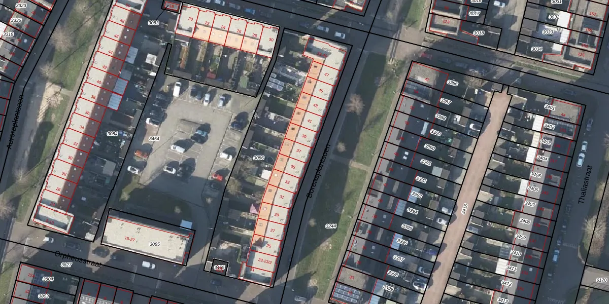 Het perceel waarop Boreasplantsoen 37 staat heeft een oppervlakte van 1894 m². Dit is een zeer groot perceel. De perceeloppervlakte wordt geregistreerd door het Kadaster. Gedetailleerde informatie over de maten van dit perceel kunt u vinden in het rapport Kadastrale kaart met maatvoering van Boreasplantsoen 37.