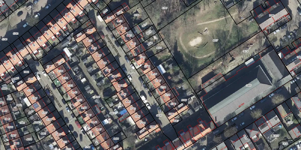 Het perceel waarop Borgardijnstraat 14 staat heeft een oppervlakte van 69 m². Dit is een klein perceel. De perceeloppervlakte wordt geregistreerd door het Kadaster. Gedetailleerde informatie over de maten van dit perceel kunt u vinden in het rapport Kadastrale kaart met maatvoering van Borgardijnstraat 14.