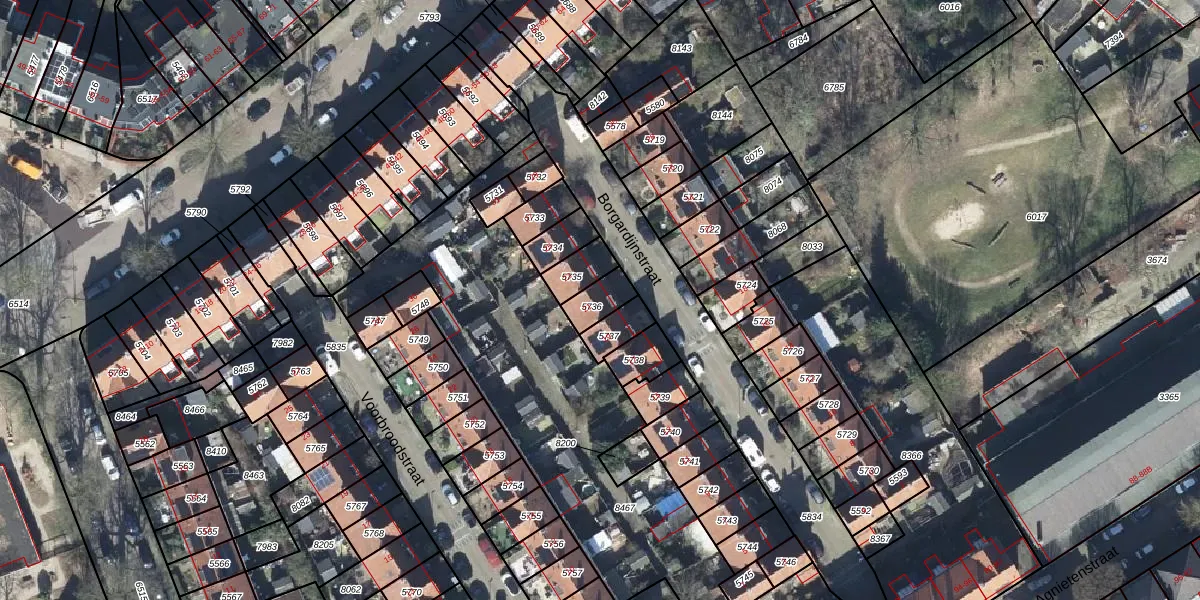 Het perceel waarop Borgardijnstraat 21 staat heeft een oppervlakte van 70 m². Dit is een klein perceel. De perceeloppervlakte wordt geregistreerd door het Kadaster. Gedetailleerde informatie over de maten van dit perceel kunt u vinden in het rapport Kadastrale kaart met maatvoering van Borgardijnstraat 21.