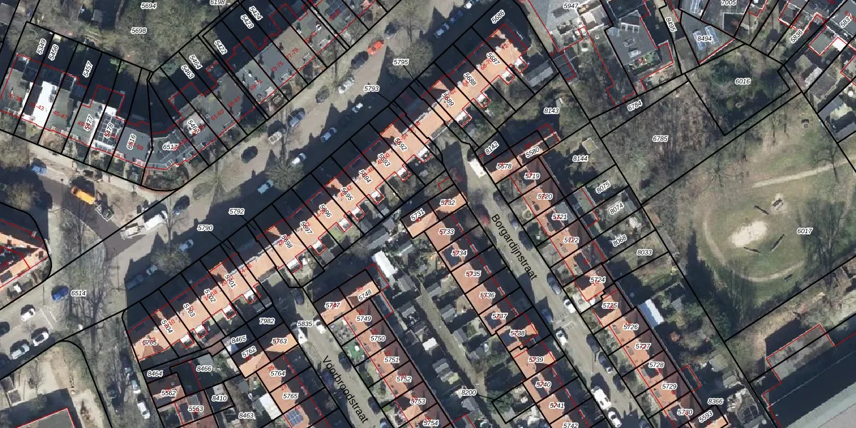 Het perceel waarop Borgardijnstraat 31 staat heeft een oppervlakte van 40 m². Dit is een klein perceel. De perceeloppervlakte wordt geregistreerd door het Kadaster. Gedetailleerde informatie over de maten van dit perceel kunt u vinden in het rapport Kadastrale kaart met maatvoering van Borgardijnstraat 31.