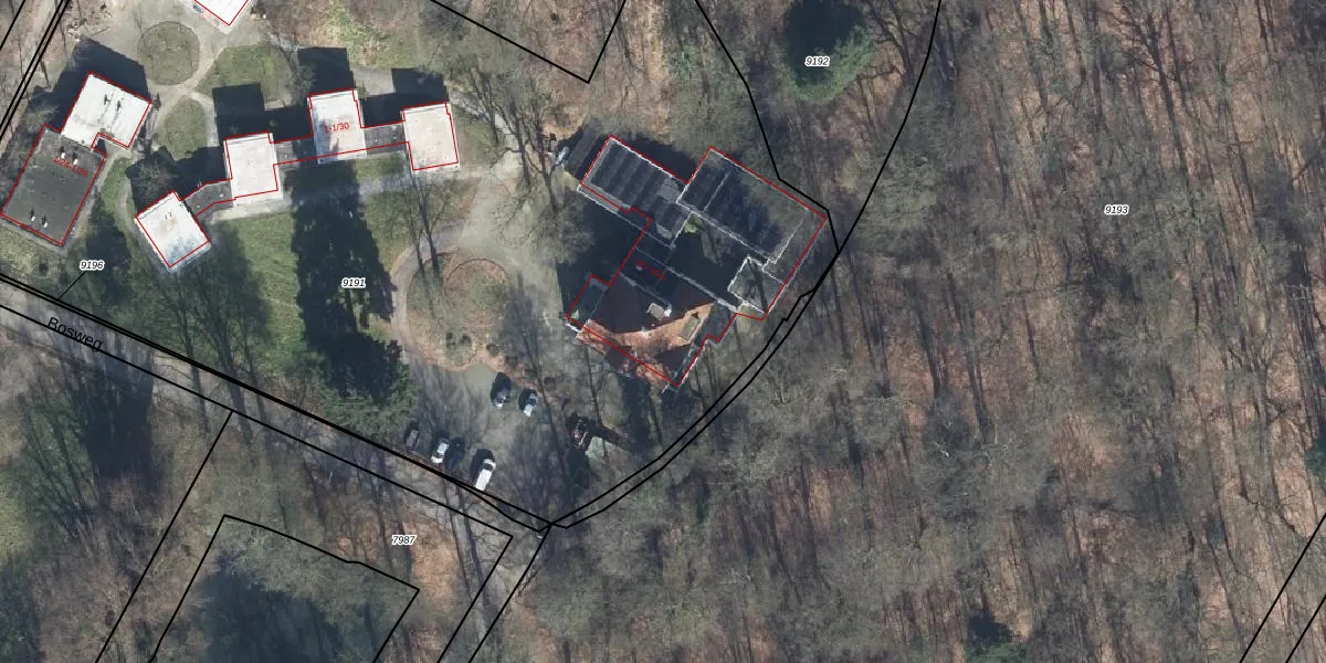 Het perceel waarop Bosweg 1-4 staat heeft een oppervlakte van 7870 m². Dit is een zeer groot perceel. De perceeloppervlakte wordt geregistreerd door het Kadaster. Gedetailleerde informatie over de maten van dit perceel kunt u vinden in het rapport Kadastrale kaart met maatvoering van Bosweg 1-4.