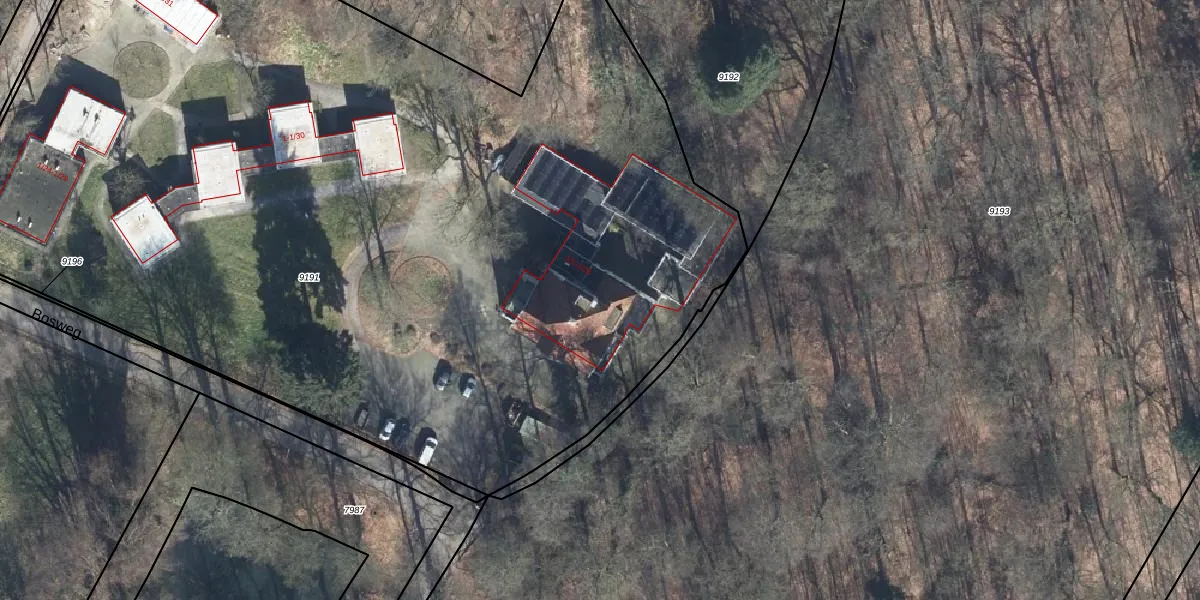 Bosweg 1-7 is gelegen op kadastraal perceel AHM01C9191. Deze kadastrale aanduiding is uniek en wordt gebruikt door het Kadaster om eigendomsrechten en andere zakelijke rechten vast te leggen. Het perceel maakt onderdeel uit van de kadastrale gemeente Arnhem.
