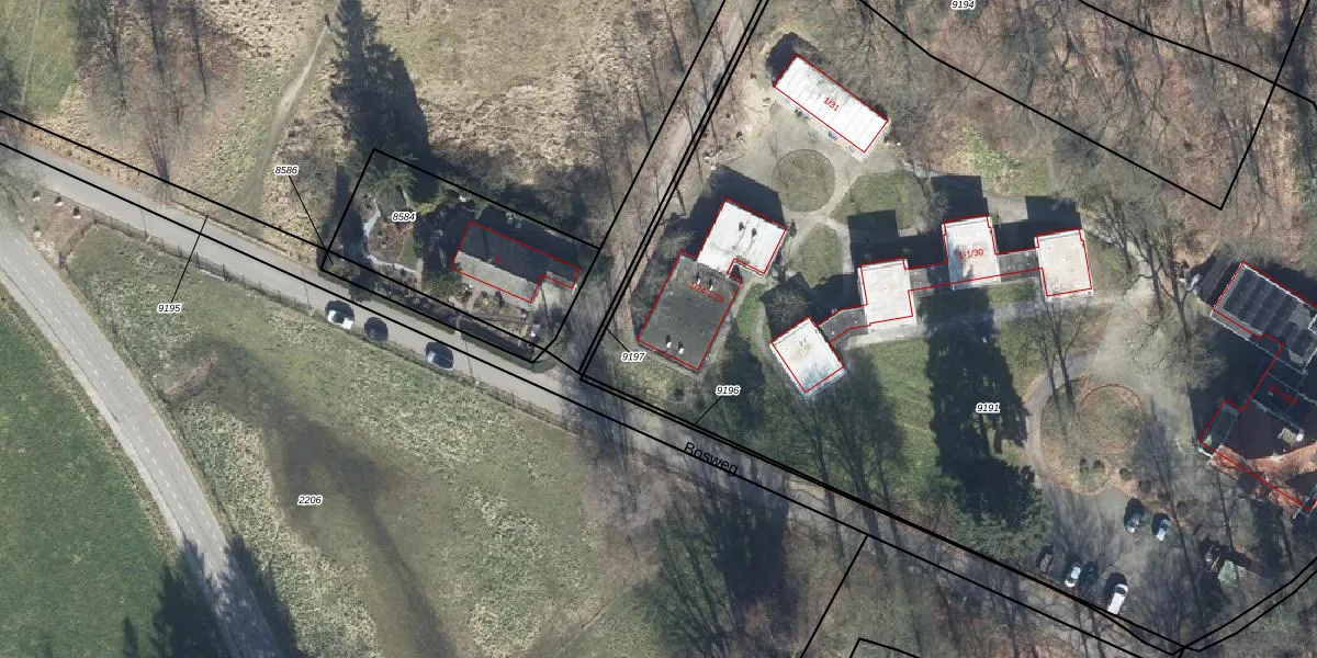 Het perceel waarop Bosweg 1-27 staat heeft een oppervlakte van 7870 m². Dit is een zeer groot perceel. De perceeloppervlakte wordt geregistreerd door het Kadaster. Gedetailleerde informatie over de maten van dit perceel kunt u vinden in het rapport Kadastrale kaart met maatvoering van Bosweg 1-27.