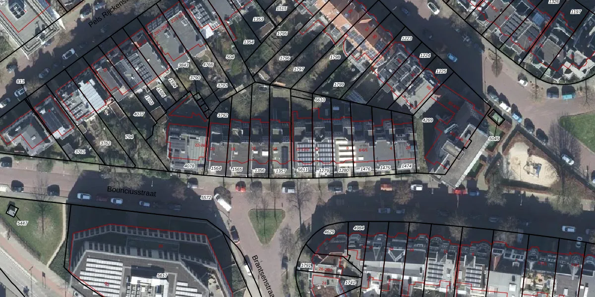 Het perceel waarop Bouriciusstraat 12 staat heeft een oppervlakte van 193 m². Dit is een middelgroot perceel. De perceeloppervlakte wordt geregistreerd door het Kadaster. Gedetailleerde informatie over de maten van dit perceel kunt u vinden in het rapport Kadastrale kaart met maatvoering van Bouriciusstraat 12.