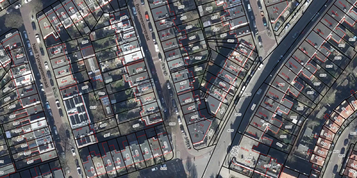 Het perceel waarop Bouwmeesterstraat 15 staat heeft een oppervlakte van 93 m². Dit is een klein perceel. De perceeloppervlakte wordt geregistreerd door het Kadaster. Gedetailleerde informatie over de maten van dit perceel kunt u vinden in het rapport Kadastrale kaart met maatvoering van Bouwmeesterstraat 15.
