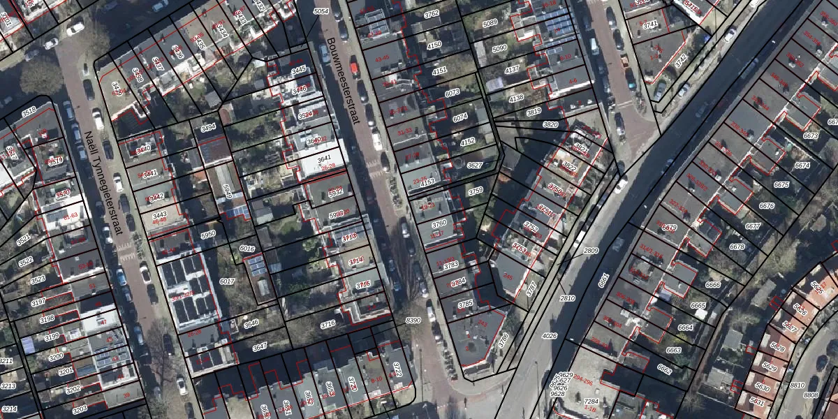 Het perceel waarop Bouwmeesterstraat 19 staat heeft een oppervlakte van 133 m². Dit is een middelgroot perceel. De perceeloppervlakte wordt geregistreerd door het Kadaster. Gedetailleerde informatie over de maten van dit perceel kunt u vinden in het rapport Kadastrale kaart met maatvoering van Bouwmeesterstraat 19.
