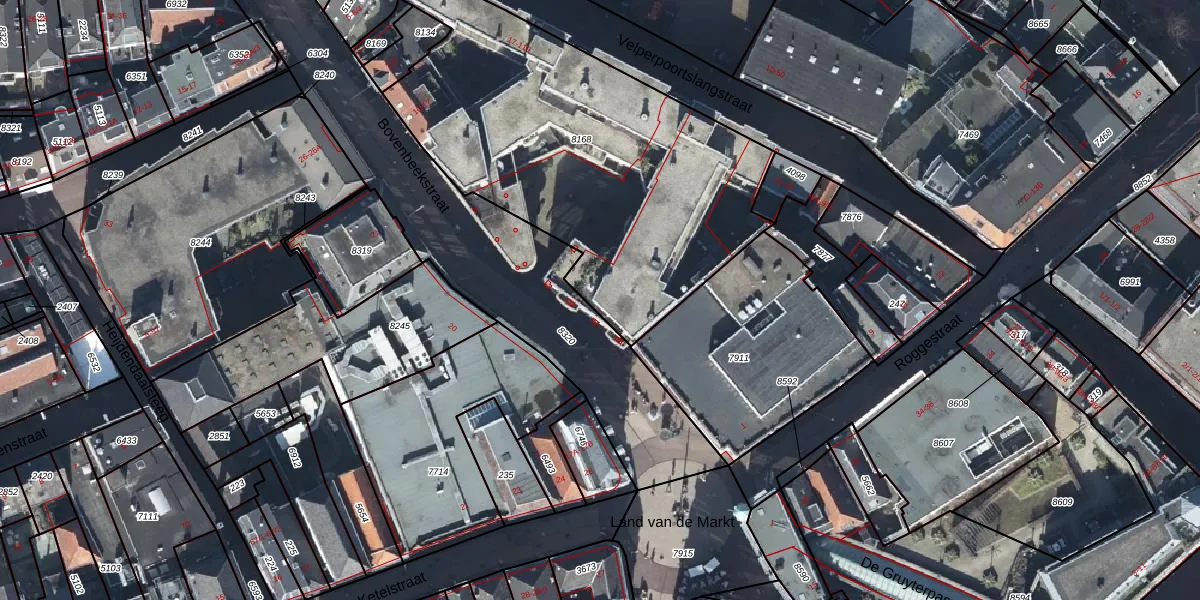Het perceel waarop het adres ligt is AHM01-O-8168. De afkorting 'AHM01' staat voor kadastrale gemeente Arnhem. Het perceel is kleiner dan gemiddeld in Arnhem. Het perceel is 1945 m² groot, terwijl het gemiddelde ligt op 2519,97 m². De grootste perceeloppervlakte in de kadastrale gemeente is 1,57 km². De kleinste oppervlakte bedraagt 0 m². Er zijn 52 adressen aanwezig op het perceel. De huidige grenzen van het perceel zijn digitaal in de Basisregistratie Kadaster (BRK) geregistreerd op 12-09-2005.