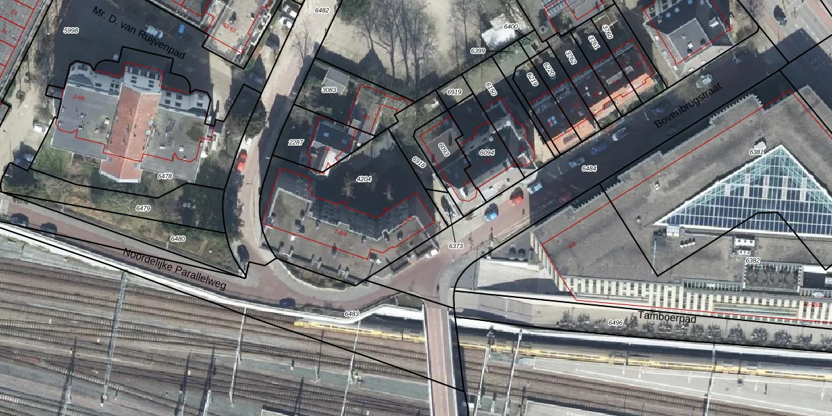 Het perceel waarop Bovenbrugstraat 1-A-4 staat heeft een oppervlakte van 1063 m². Dit is een zeer groot perceel. De perceeloppervlakte wordt geregistreerd door het Kadaster. Gedetailleerde informatie over de maten van dit perceel kunt u vinden in het rapport Kadastrale kaart met maatvoering van Bovenbrugstraat 1-A-4.