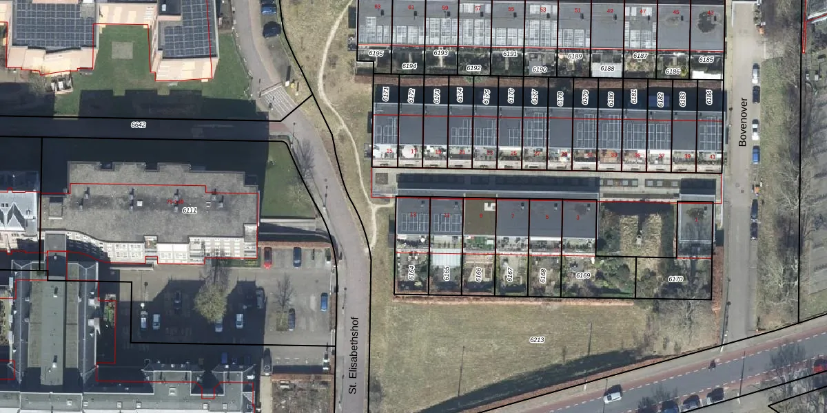 Gebruik de zoekbalk of klik op een perceel voor informatie over de adressen binnen dit perceel.