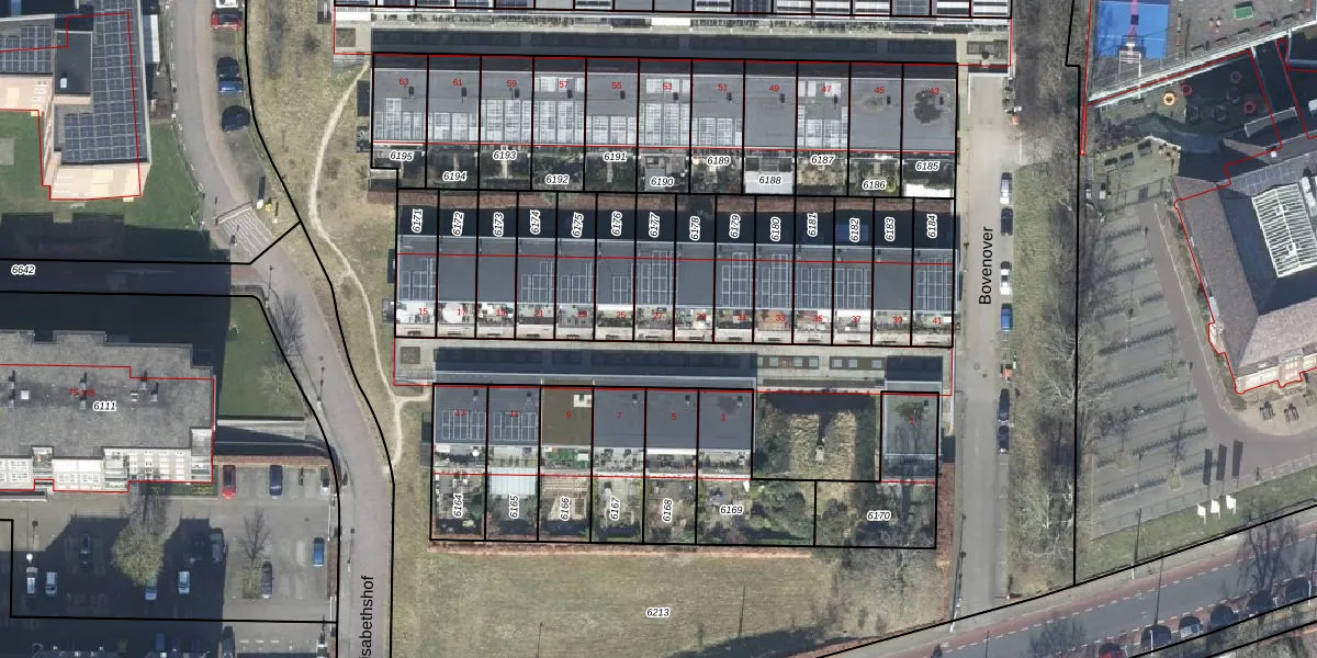Gebruik de zoekbalk of klik op een perceel voor informatie over de adressen binnen dit perceel.